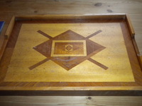 Die andere Seite des Tabletts. In der Berufsschule als Übungsstück erstellt. Hier durften wir uns frei entfalten vom Motiv her. Damals fand ich das Toll. Heute würde ich das nicht mehr wählen… Allerdings kann man einmal sehe, was mit einfachen geometrischen Figuren erzielt werden kann.